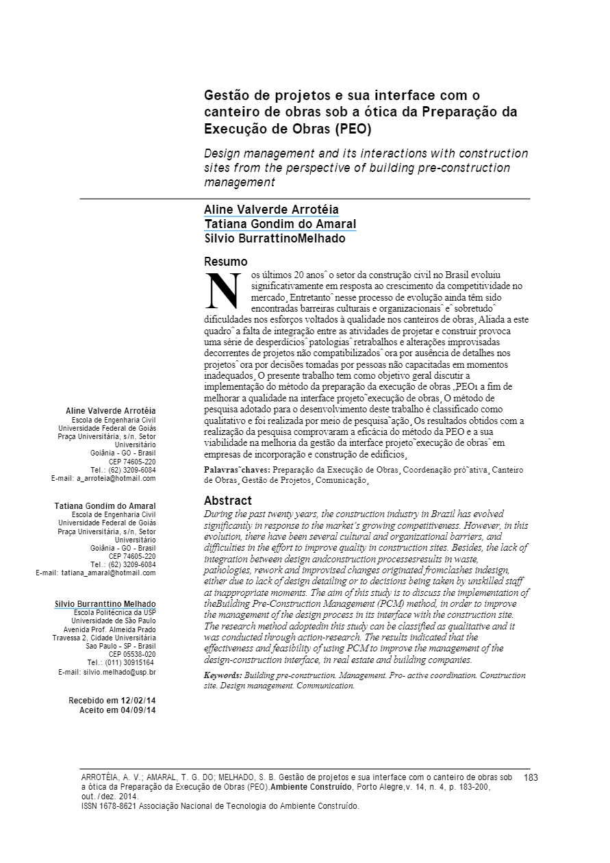 Início » Portfolios » 2014 | Artigo | Gestão de Projetos e Interface com Canteiro